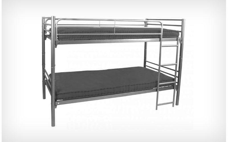 Etagenbetten, Stahlrohrbetten, Stockbetten, Doppelstockbetten, Einzelbetten, Holzbetten komplett mit Matratzen, Kissen, Decken, Überzüge, Spannbettlaken, Betttücher
